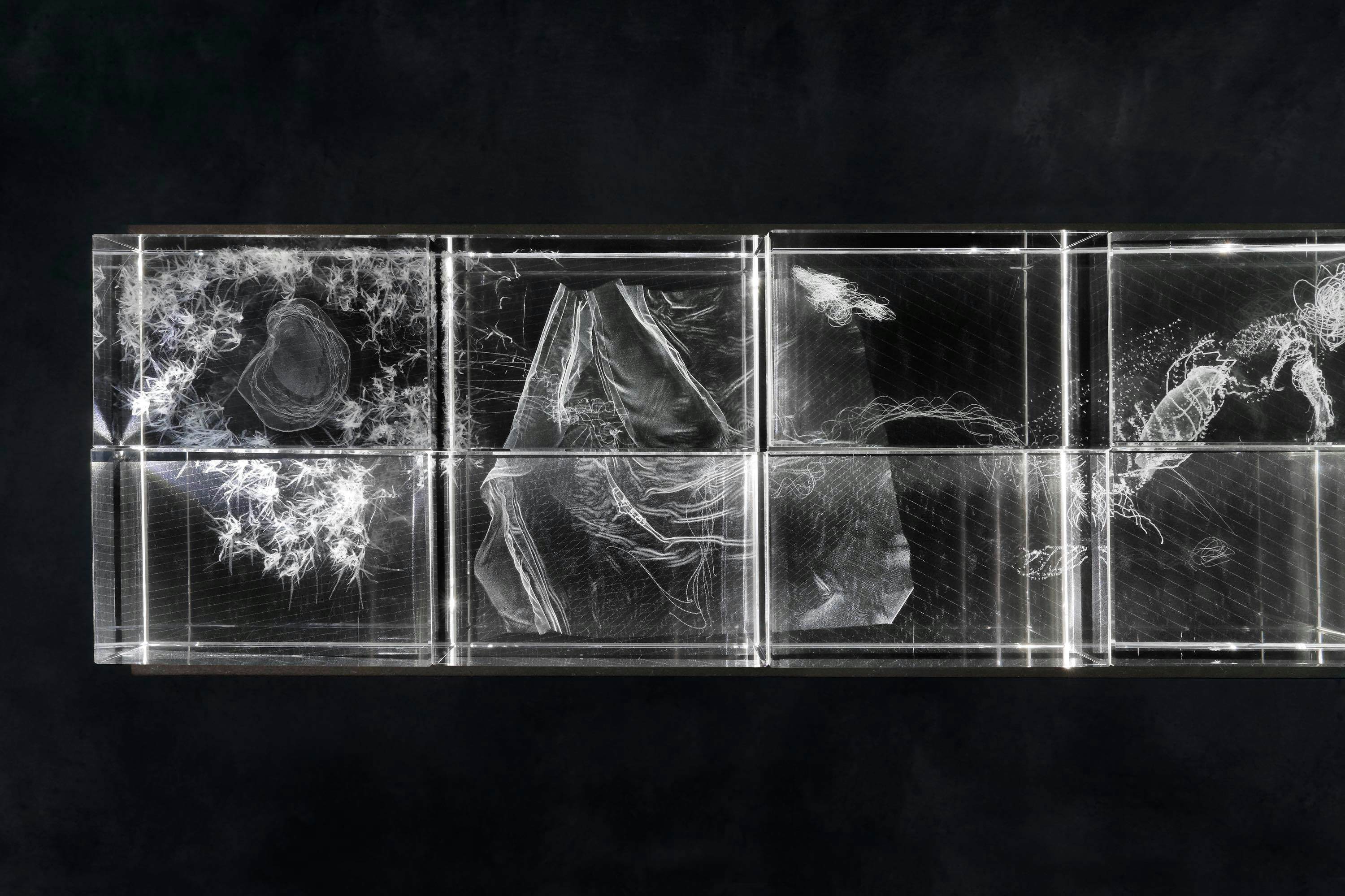 “Eva L’Hoest has been creating a delicate dystopian universe for several years. Between fictional and real ruins, the moving images of her films and installations explore the meanders of memory - human and nonhuman - reminiscent of larger economic and environmental issues”, says curator and writer Antoinette Jattiot. “For the realization of her fictional landscapes inspired by natural or domestic contexts, she mingles different technical image processes (3D scans, modeling, direct capture, special effects generators) with research on subjects as vast and precise as the study of vanities, systems of measurement or ancestral beliefs. Along the slow travellings of her films, water, nature, bodies, and architectural motifs often merge into a whole that decompartmentalizes the scales and makes the viewer fall into the heart of a fragmented matter in resonance with the complexity of the living. The plasticity of the images sewn from metadata and from technological and scientific vocabularies also defies the power of the algorithms from which she draws inspiration and which she dissects. In the interstices of indeterminate, fragile and shimmering spaces, the artist questions transparency, the transfer of data and surveillance systems. Eva L’Hoest never gives up on reality, as evidenced by her practice of 3D sculpture and virtual reality that sometimes complements her films and installations. Her approach to the photographic image, whether sculptural, digital or conceptual, reveals and deconstructs ecosystems that alert us to our relationship to space and the digital era. Poetically, she explores the state of the world, our capacity to inhabit time and the power of contemplation.”